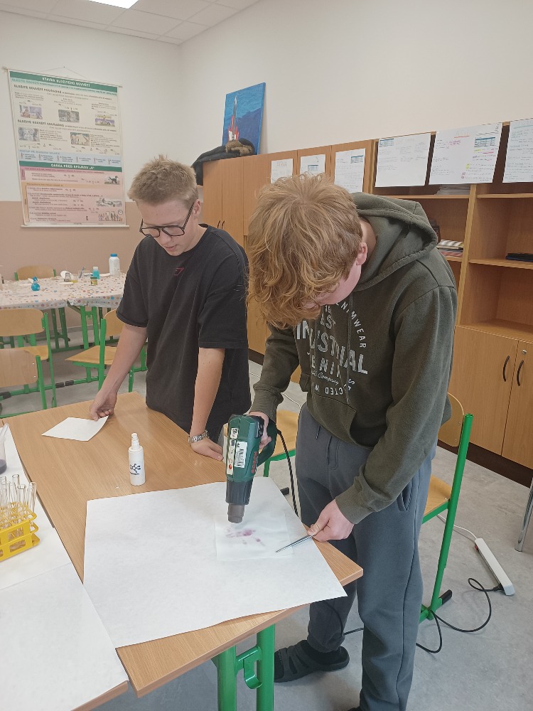 - Chromatografii – rozklad barev pomocí filtračního papíru a vody.