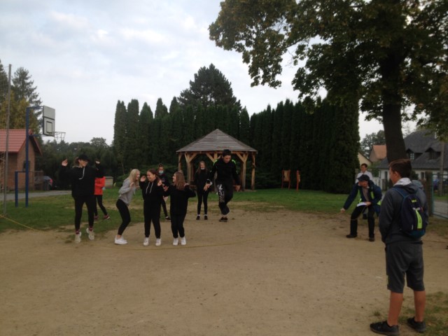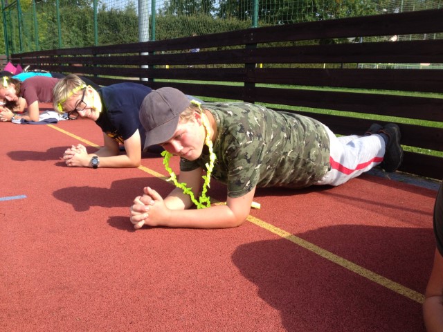 Pondělní dopoledne jsme se rozhodli věnovat sportovním aktivitám, rozděleni do jednotlivých tříd jsme měli za úkol soutěžit v nevšedních disciplínách. Některé třídní týmy byly oslabené, neboť se nás sešlo pouhých 110 žáků.